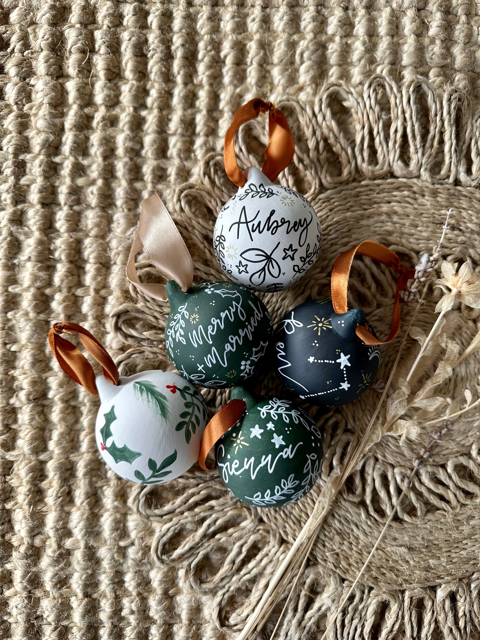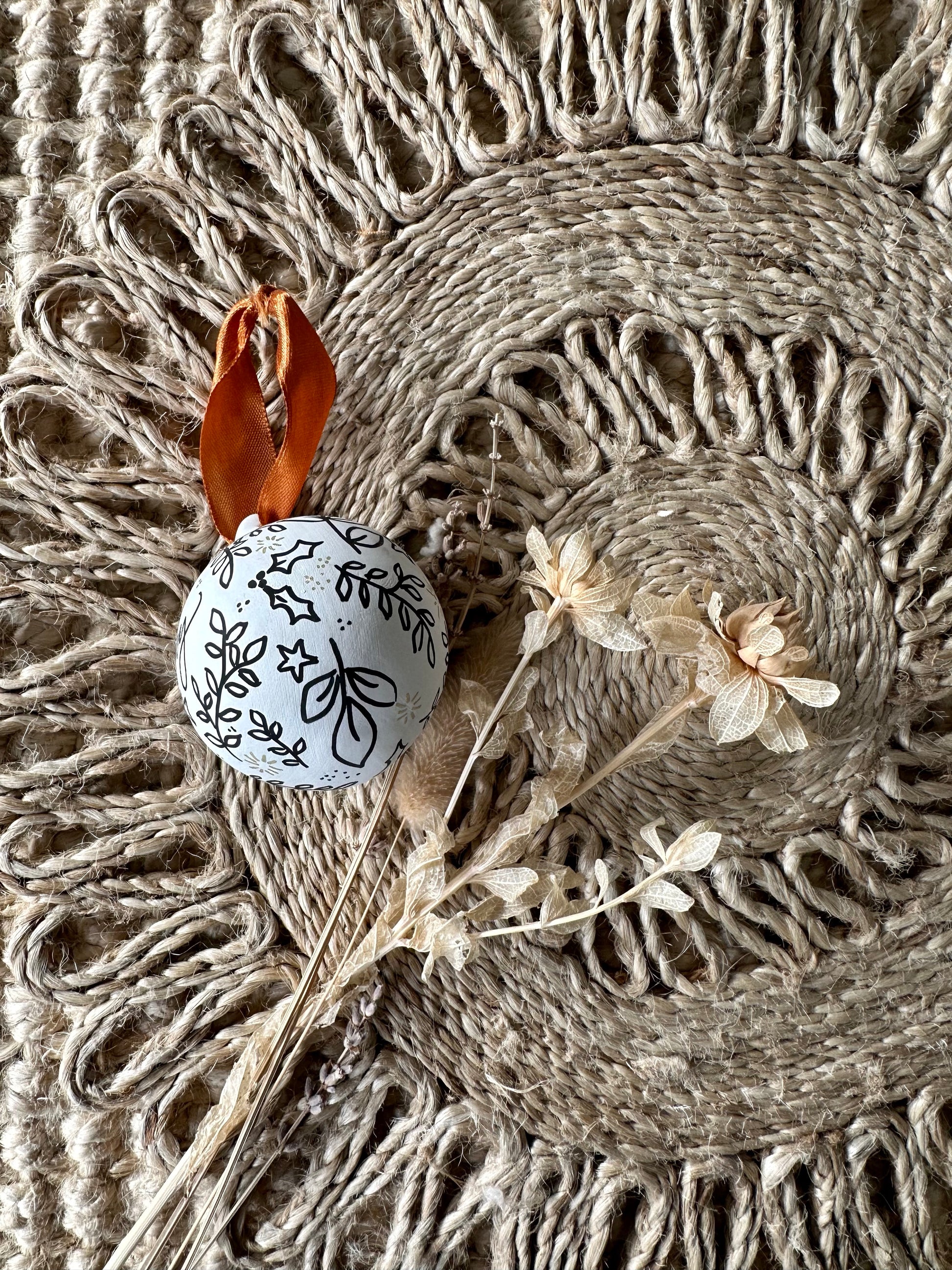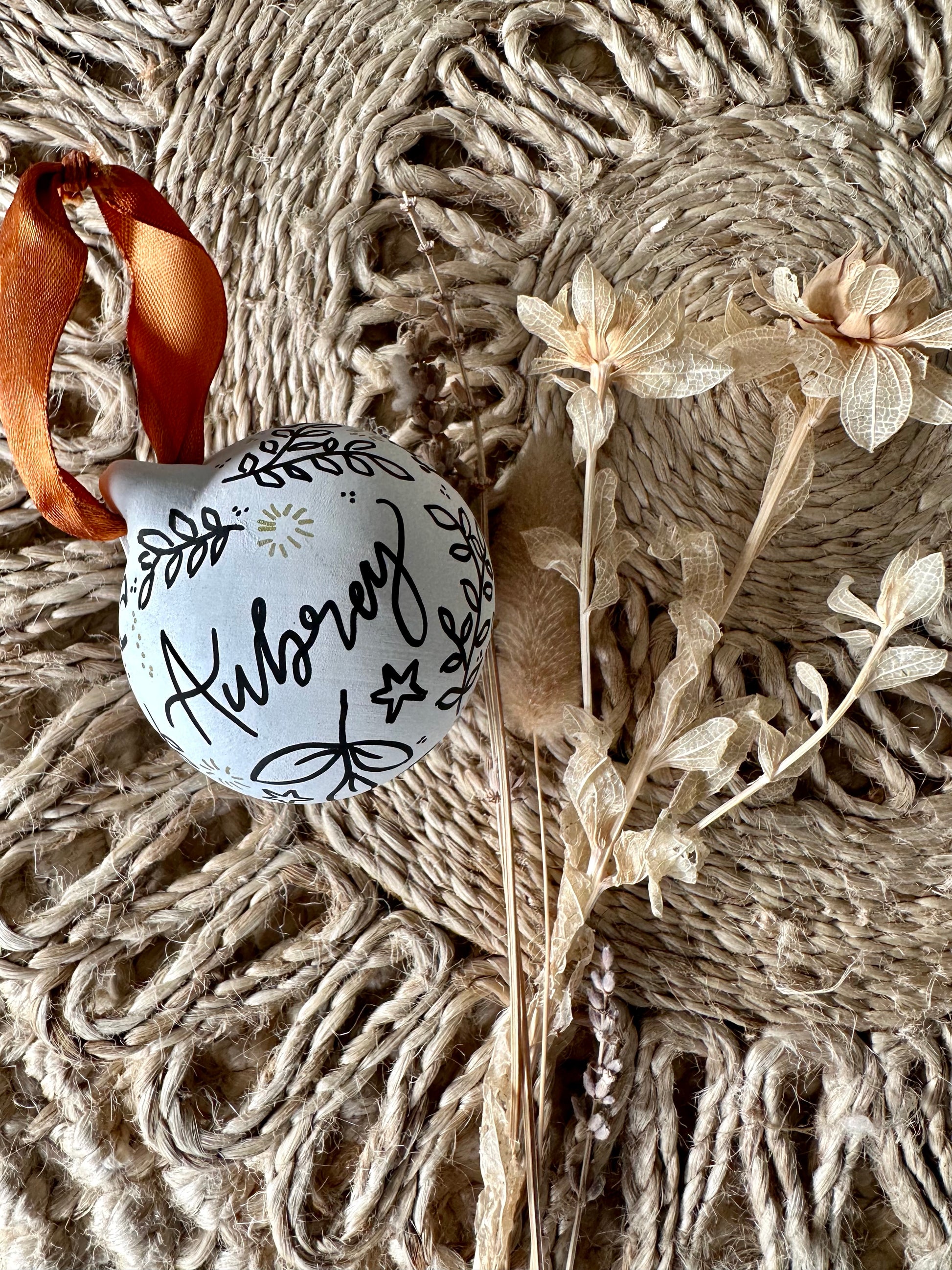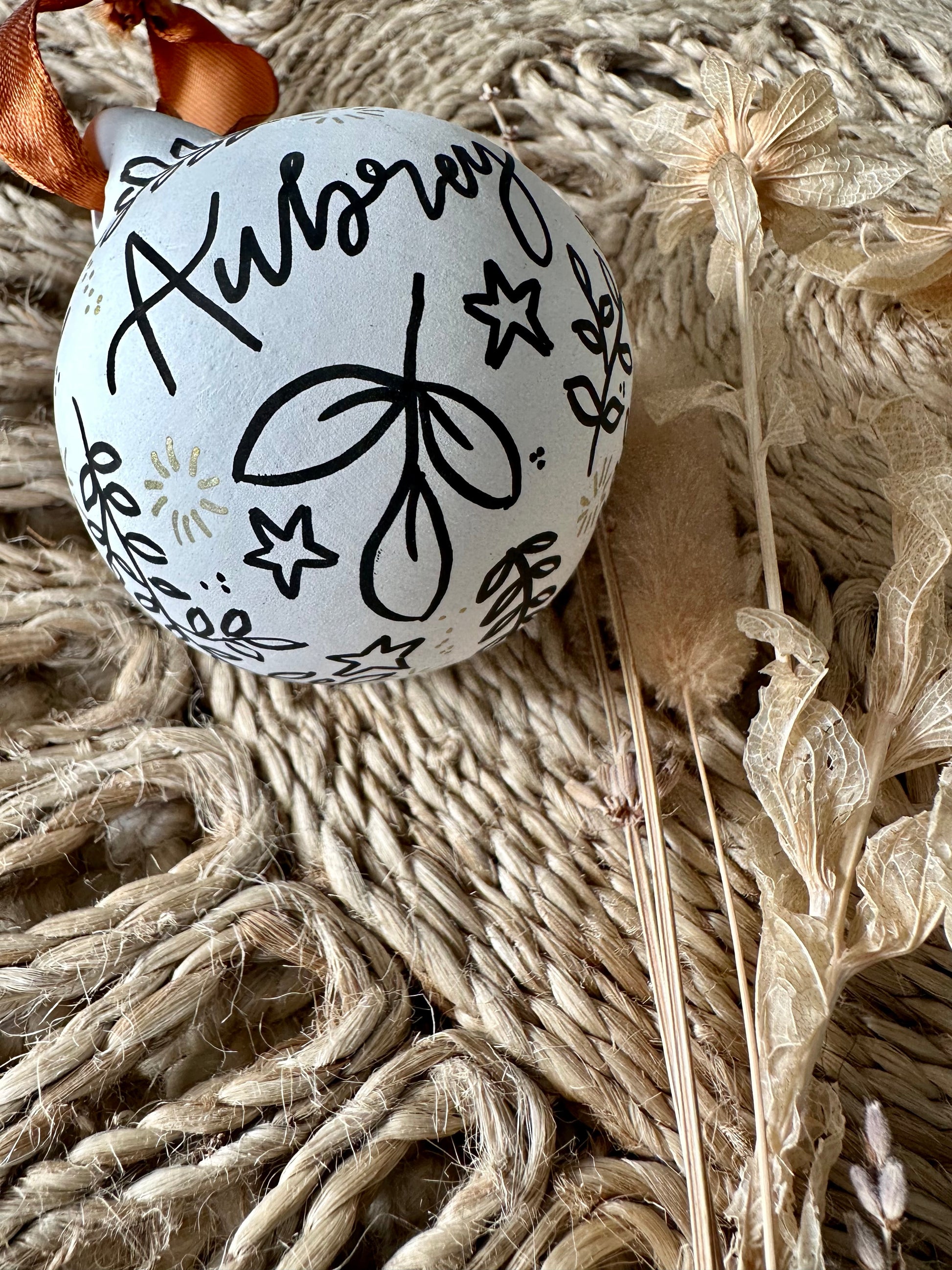 Personalised Hand Painted Ceramic Monochrome Christmas Bauble