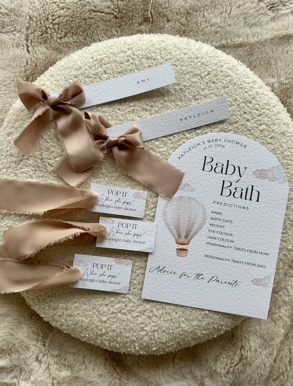 The perfect personalised elegant touch to your dinner table. Each designed, printed on 300gm2 textured quality card and finished with a hand tied satin chiffon bow.